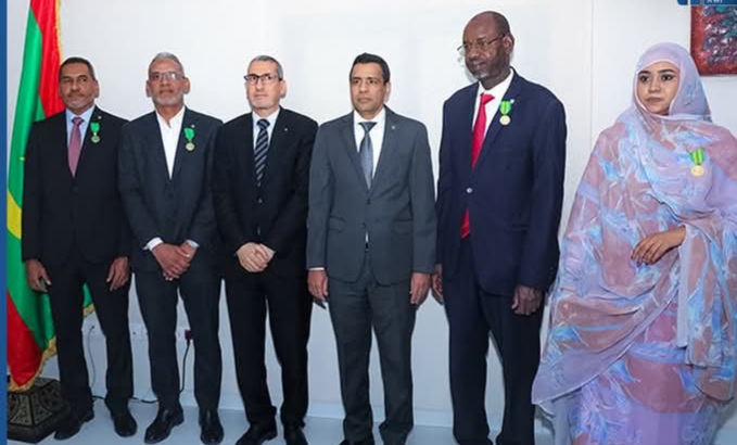 وشح محافظ البنك المركزي الموريتاني، السيد محمد الأمين ولد الذهبي، باسم رئيس الجمهورية، السيد محمد ولد الشيخ الغزواني، اليوم الاثنين في نواكشوط، عددا من الموظفين والعمال بالبنك.